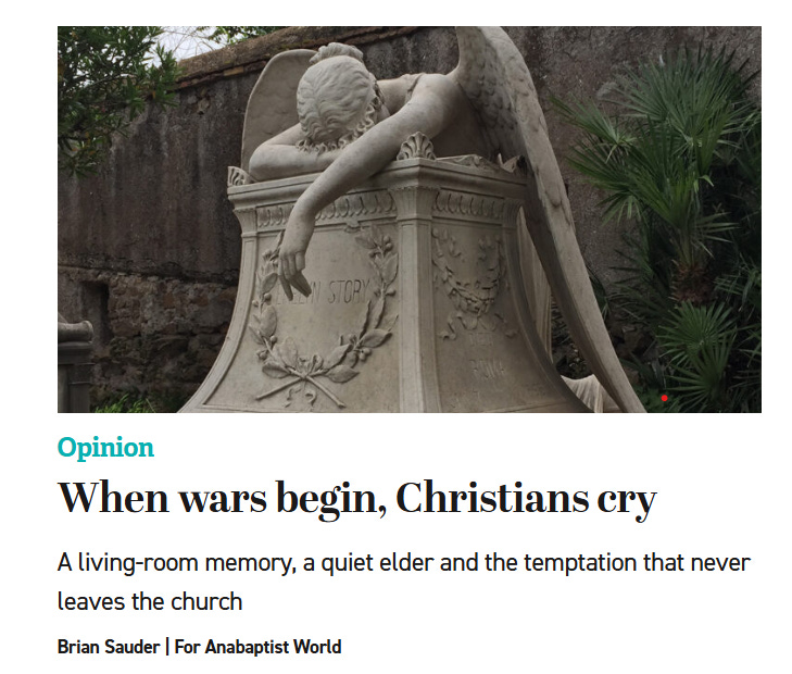 Something I first wrote on this Substack, “When Wars Begin, Christians Cry,” was just picked up and published in Anabaptist World.